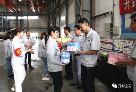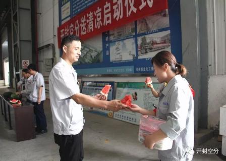 在空分設(shè)備廠車間內(nèi),曹小毛、王志峰、張石芳為各基層工會送上了小藥箱,把切好的西瓜送到工人師傅們手中。“天氣炎熱,大家多注意身體。”“來,吃塊西瓜降降溫吧!”……豐富的藥箱,清涼的西瓜,溫馨的叮囑,讓奮戰(zhàn)在一線的干部職工們切身感受到了公司的殷切關(guān)懷。大家紛紛表示,要立足崗位,不忘初心,牢記使命,為公司年度生產(chǎn)任務(wù)目標(biāo)實(shí)現(xiàn)做貢獻(xiàn)。