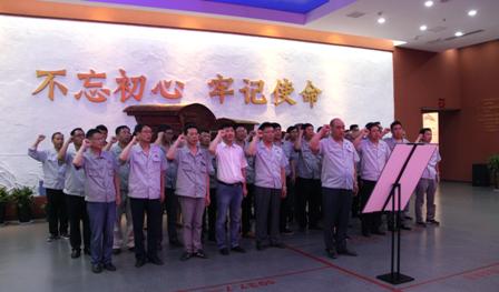 在宣誓廳,由公司黨委書記、董事長曾祥志領(lǐng)誓,全體黨員整齊列隊,舉起右拳、面對黨旗,重溫了入黨誓詞,鏗鏘有力的誓言響徹宣誓大廳。