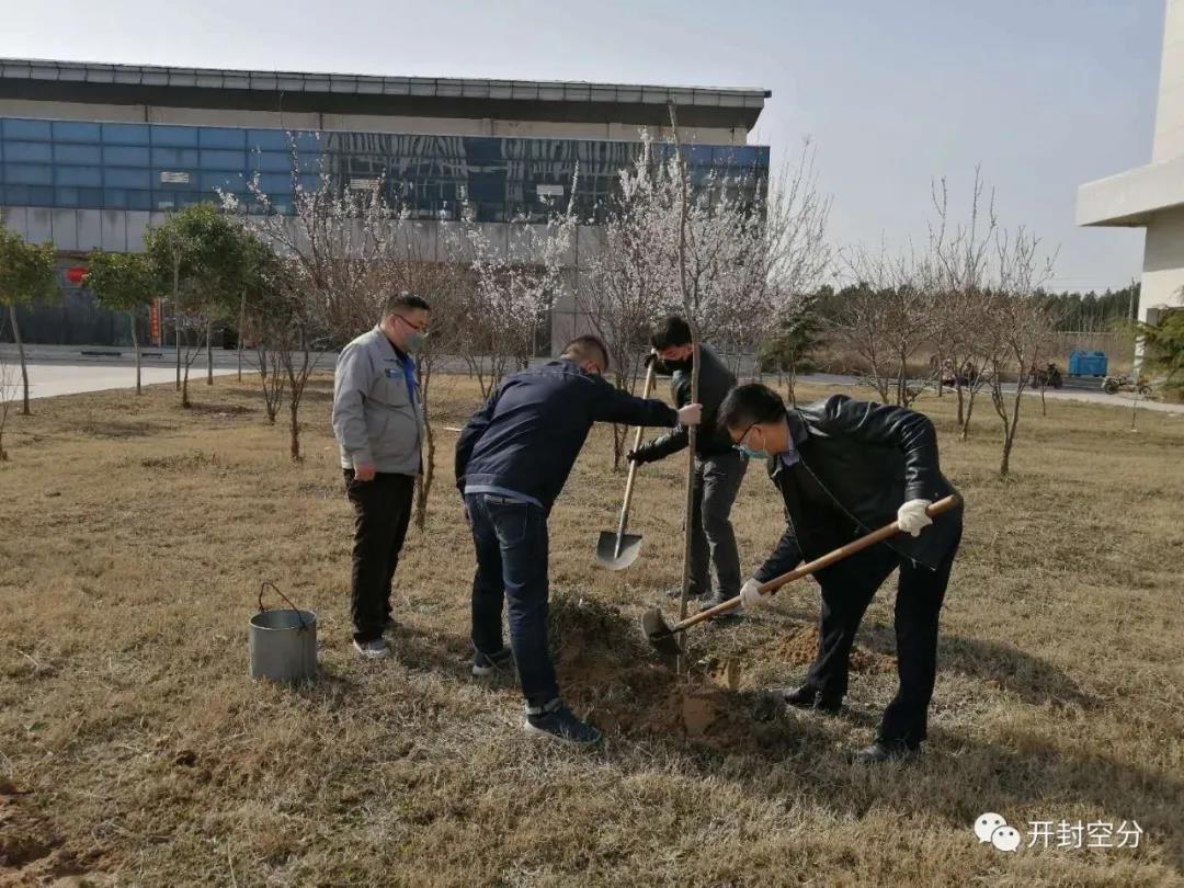 今年的植樹節(jié)和以往有些不同,目前依然是疫情防控的關(guān)鍵期,開封空分統(tǒng)籌兼顧,在確保人員安全的同時(shí),搶抓春季植樹的黃金時(shí)節(jié)。3月12日,陽(yáng)光明媚,復(fù)工的職工們?nèi)颗宕骺谡?,拿起鐵锨,提上水桶,開始了新一年的植樹活動(dòng)。